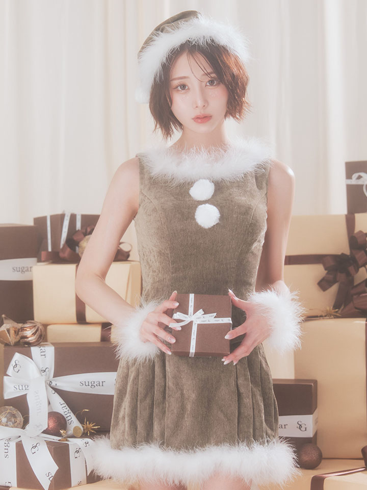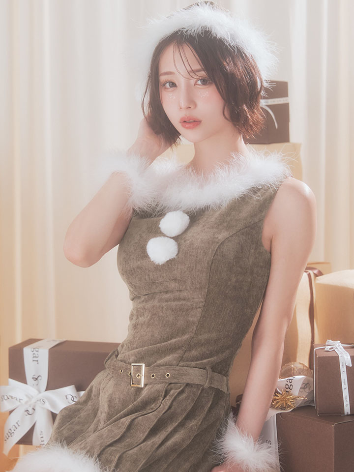 【即日発送】【送料無料!】【サンタ】ベルト付きファーサンタコスプレ【コスプレ4点セット】【XS-XLサイズ/3カラー】[OF04/OF04] [SS-208-YN-dzw-BR-25CC]