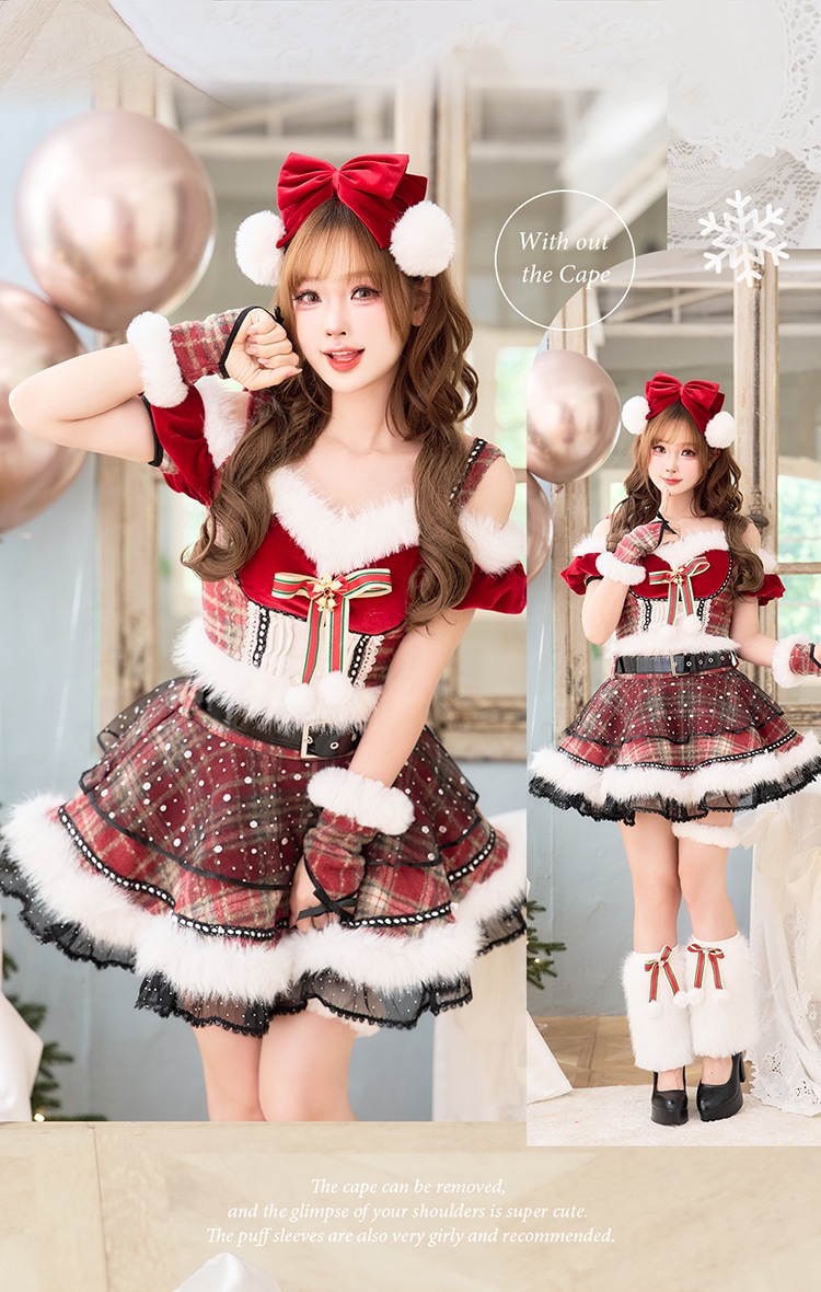 レトロなチェック柄がキュートなトレンド感あふれるサンタコスプレ♥