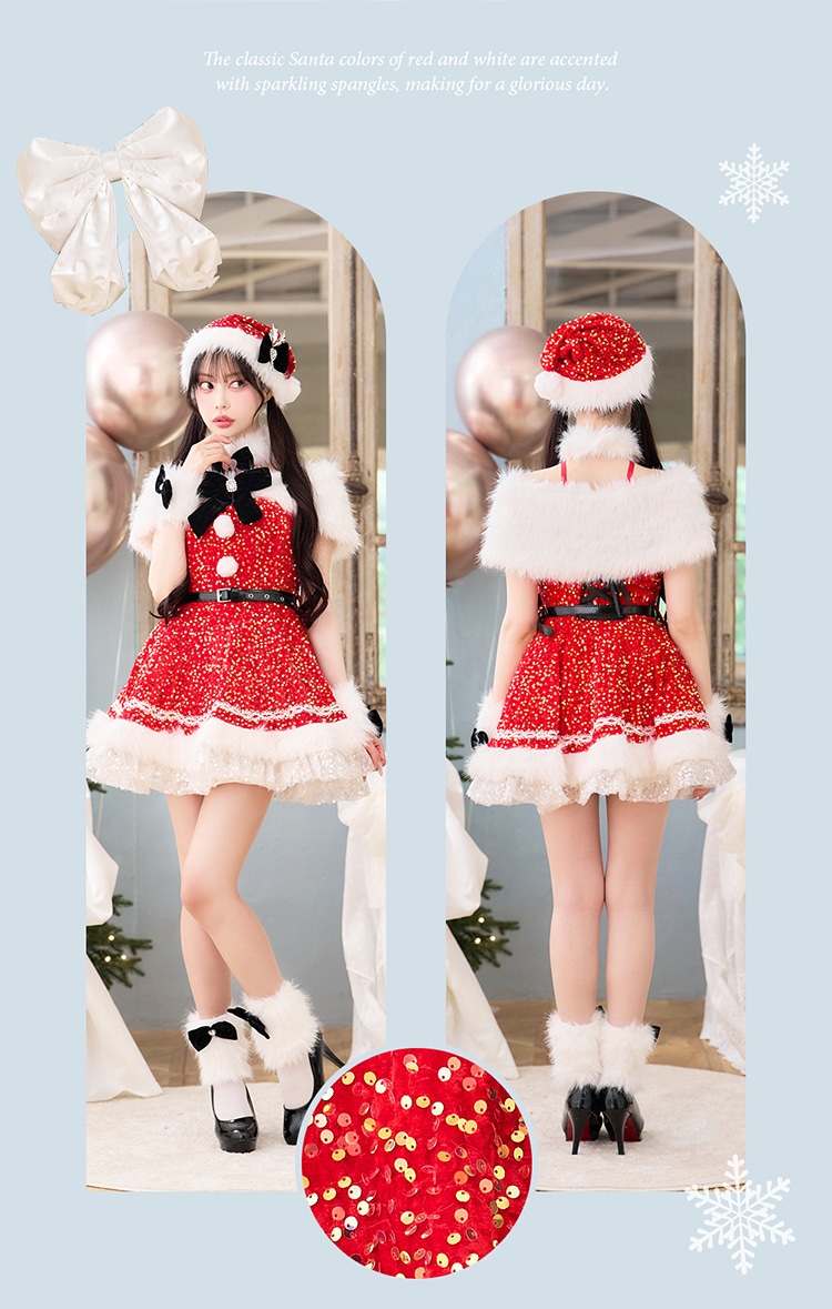【即日発送!】【クリスマスコスプレ9点セット】【Malymoon/マリームーン】スパークリージュエルリボンサンタ【SM-ML/2カラー】[OF03] [SS-25059ML-W]