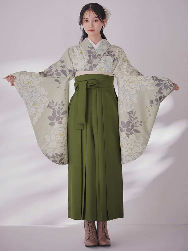 【予約商品 / 1月中旬発送予定】白牡丹 モカ二尺袖着物【卒業袴3点セット 二尺袖着物/帯/袴】 [HR-101-ok-MOC-F-25MU-251220]