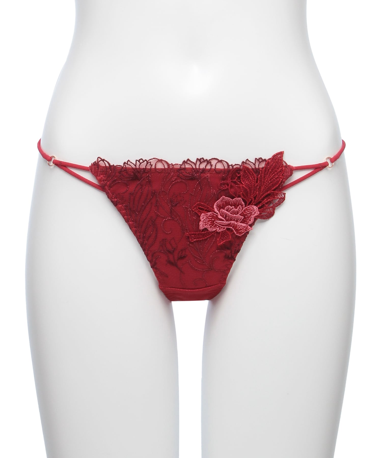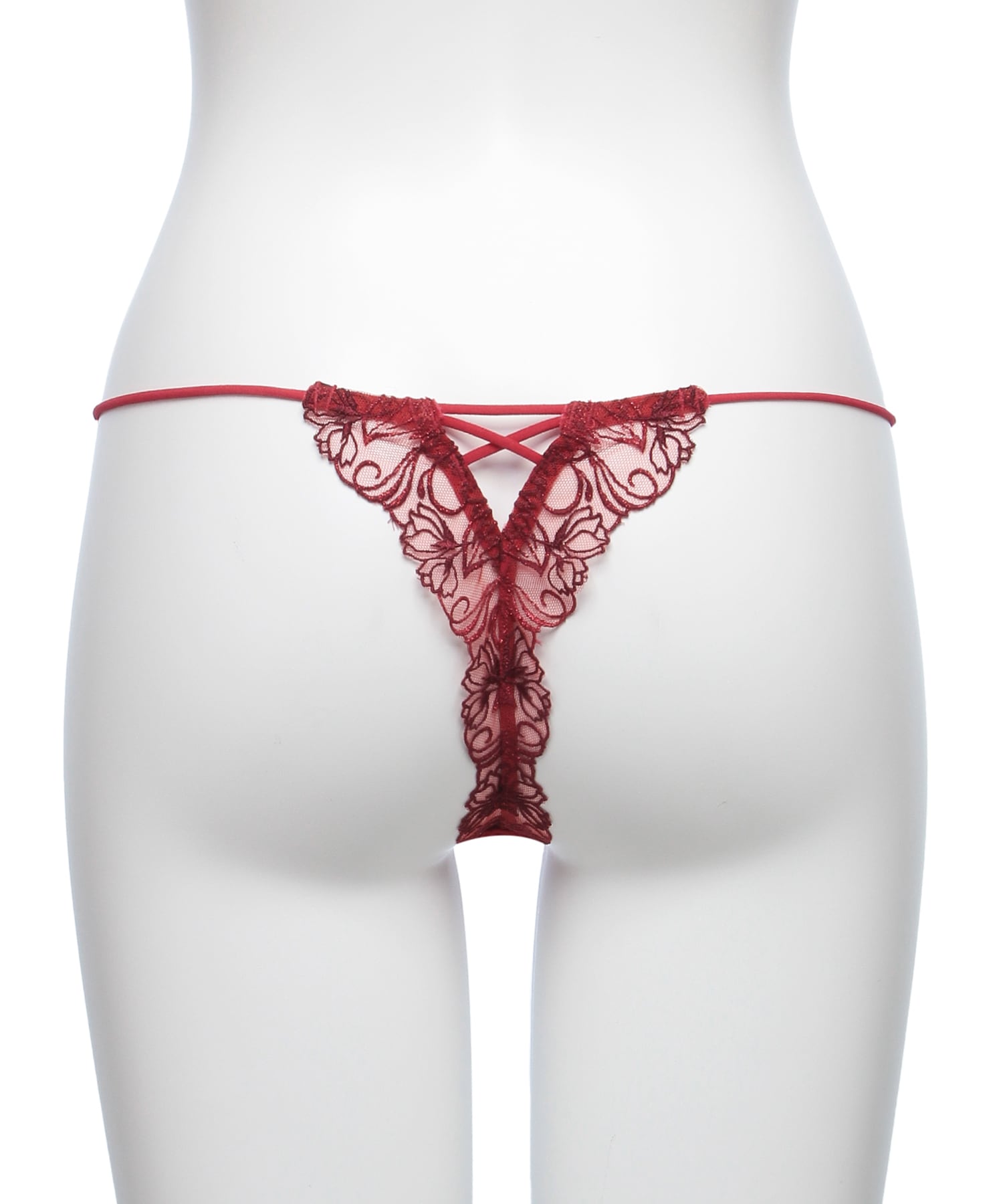 [素材] ナイロン・ポリエステル・その他(スリット糸使用)フェザーセレステ エンブロイダリーレース Tバック商品説明