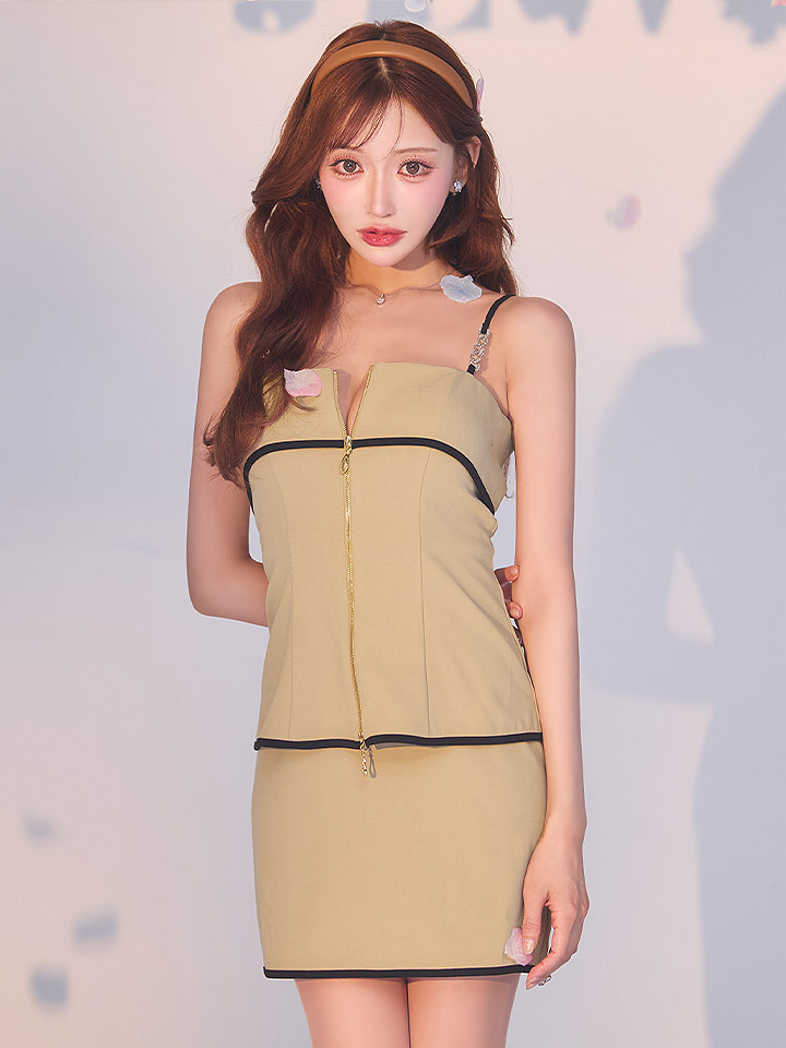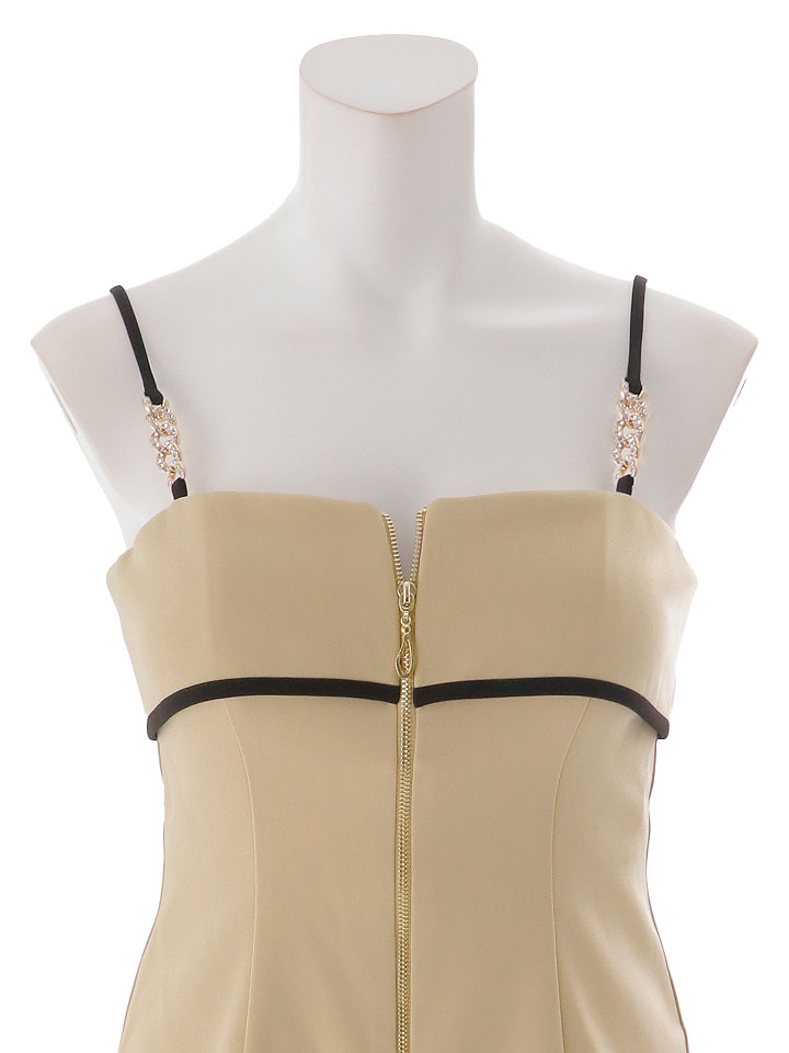 計算されたパイピングライン。ファスナーで色気を操る、攻めのミニドレス。