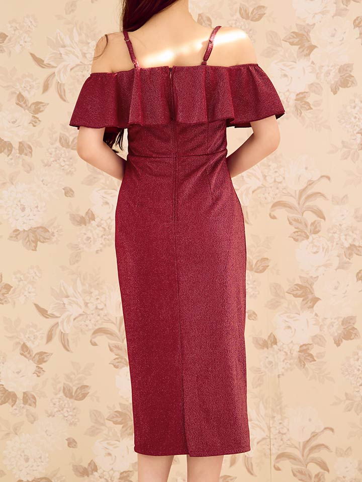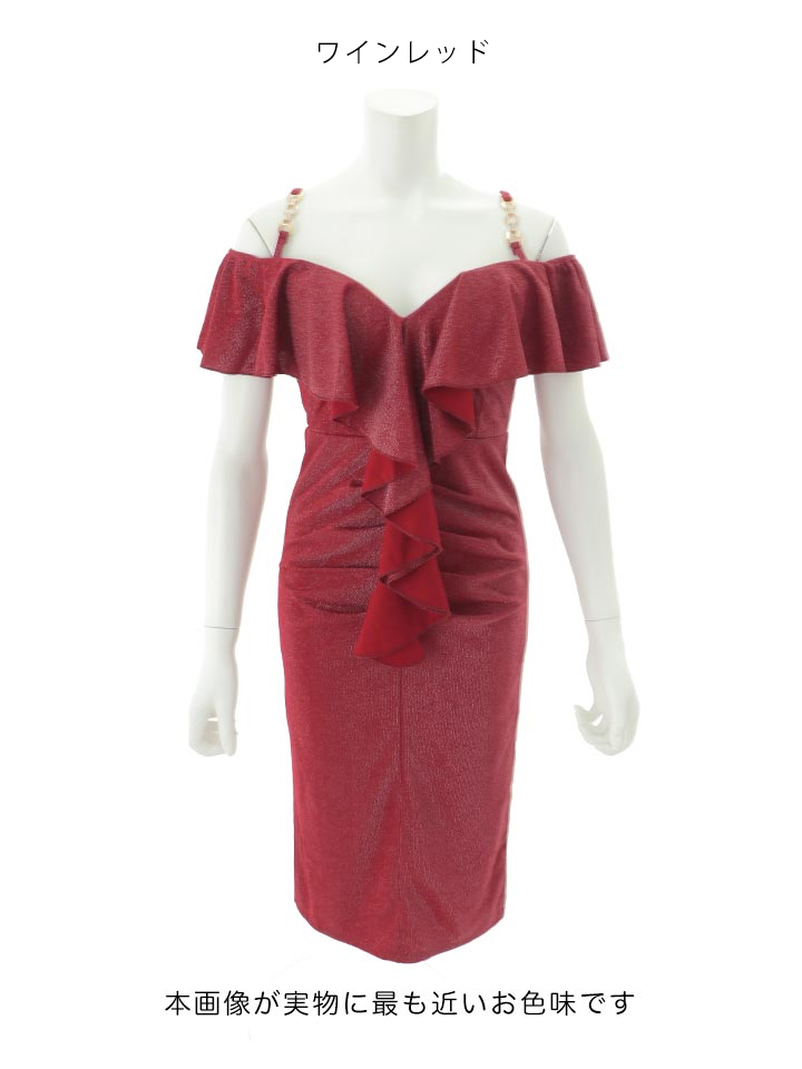 フリルオフショルダーミディアムドレス/キャバドレス【XS-Mサイズ/2カラー】[OF03] 【IM】 [J-971IM-251220-1]