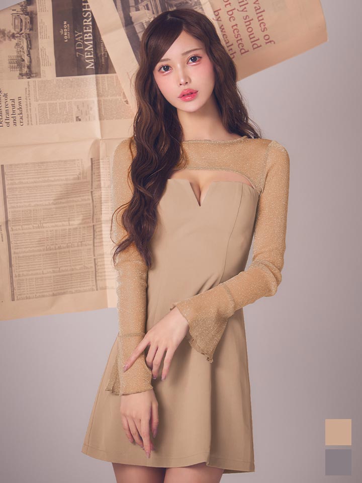 シアーな透け感に釘付け。谷間見せで色香を放つ、洗練セクシーミニドレス。