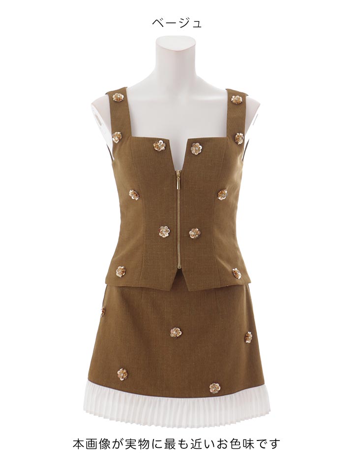 送料無料!ビジューフロントジッププリーツセットアップミニドレス/キャバドレス【XS-Mサイズ/1カラー】[OF04]【SB】dzwBF [3531SBdzwBF-260115-1]