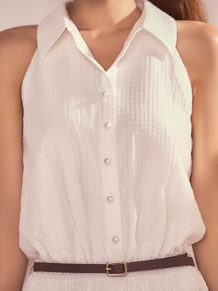 「シャツ風デザイン」の程よいゆとりが、華奢見えをさらに後押しする優秀デザインです。