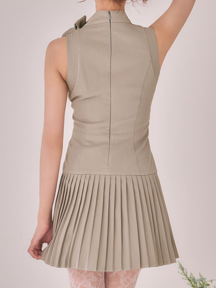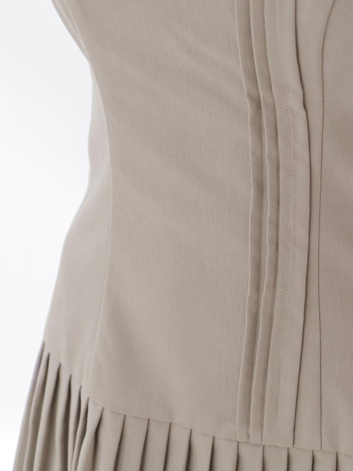プリーツスカートと、タックが生み出す高級感のある立体シルエットが魅力。