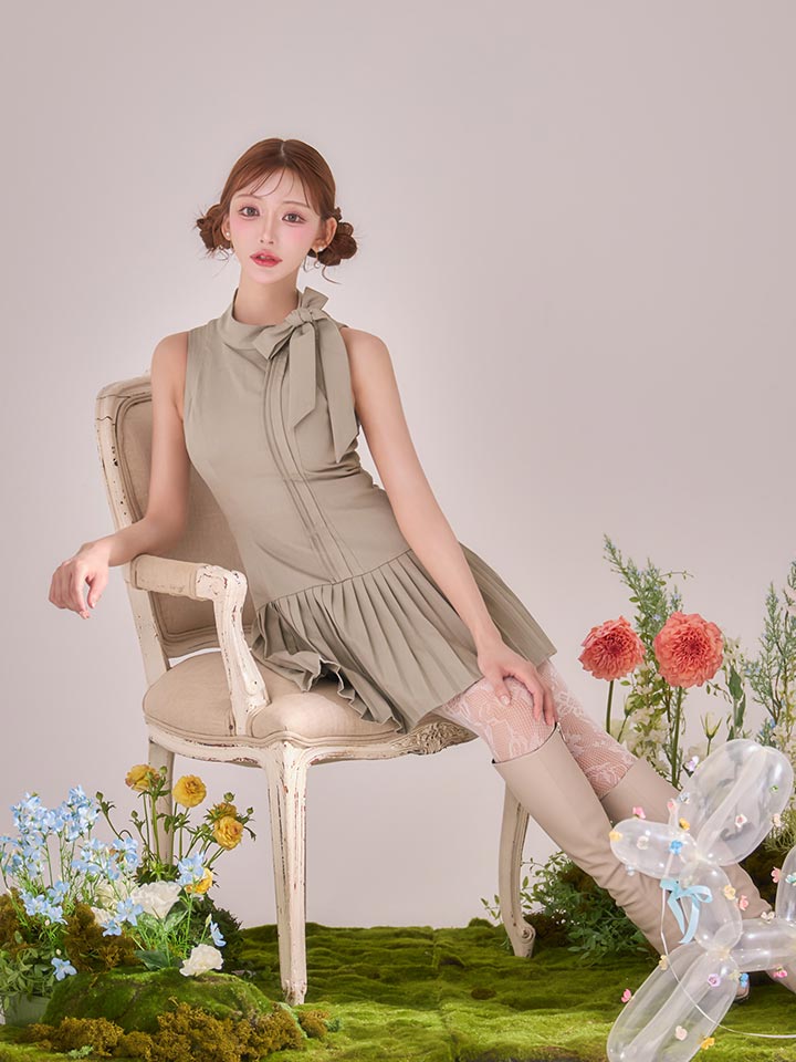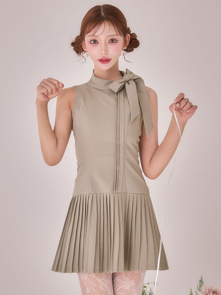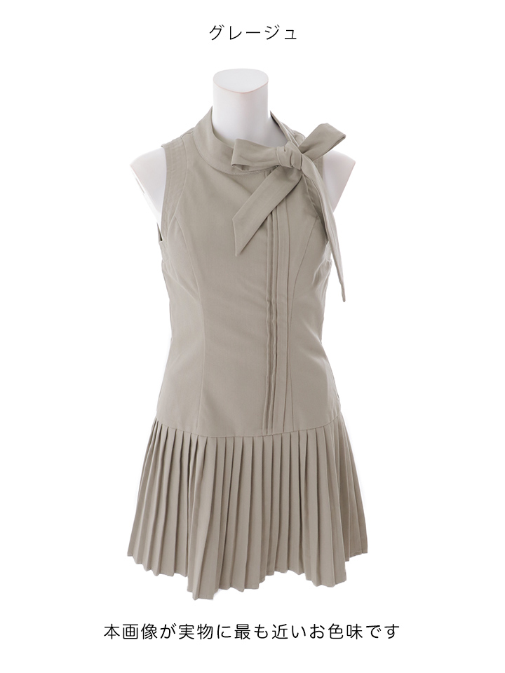 送料無料!リボンプリーツAラインワンピースドレス/キャバドレス【XS-Lサイズ/1カラー】【予約商品/2月中旬発送予定】[OF01]【SB】IA [8561SBIA-260209-1]