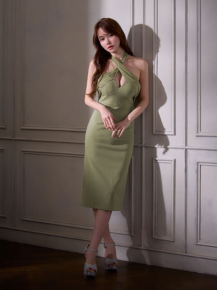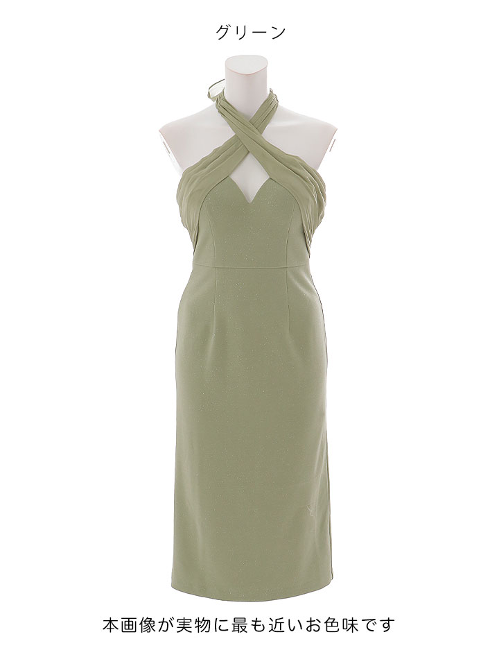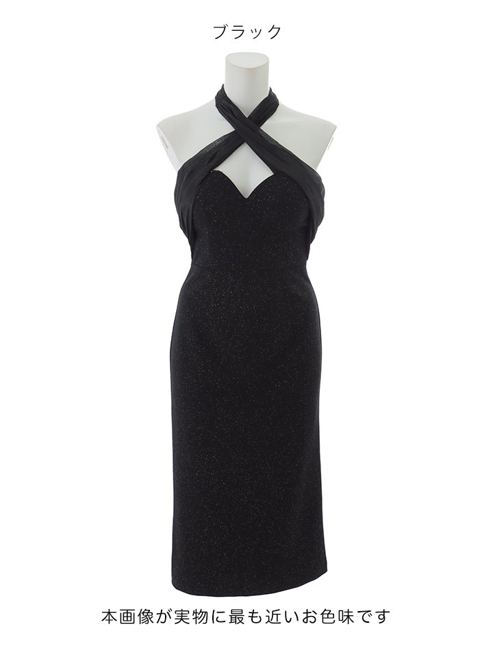 【即日発送】送料無料!クロスホルターネックラメタイトミディアムドレス/キャバドレス【XS-Mサイズ/2カラー】[OF03]【YN】dzmvFV [5816YNdzmvFV-260117-1]