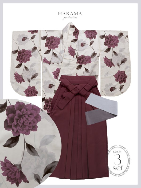【予約商品 / 1月中旬発送予定】レッドカーネーション ベージュ二尺袖着物【卒業袴3点セット 二尺袖着物/帯/袴】 [HR-104-ok-BE-F-25MU-251224]