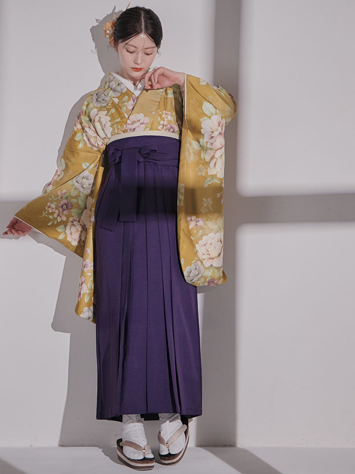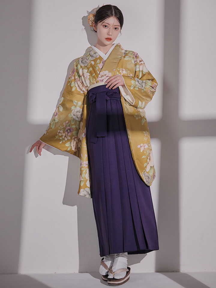 【予約商品 / 1月中旬発送予定】黄フラワーブーケ イエロー二尺袖着物【卒業袴3点セット 二尺袖着物/帯/袴】 [HR-113-ok-MUS-F-25EN-251224]