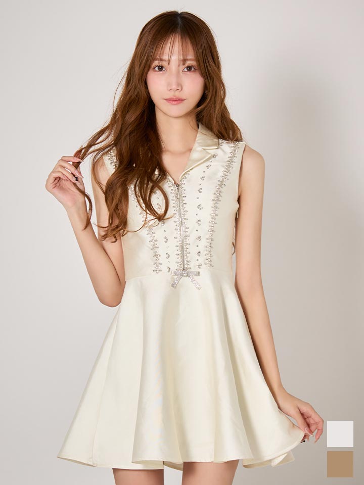 送料無料!ノースリーブビジューフレアミニワンピース/キャバドレス【S-Mサイズ/2カラー】[OF03] 【YN】dzyvIA [5741YNdzyvIA-251226-1]