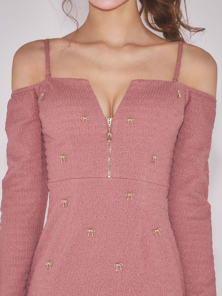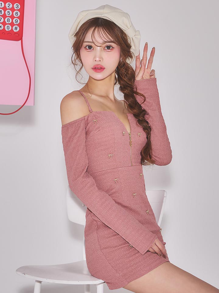 甘いディテールを詰め込んだあざとセクシーな長袖タイトミニドレス。