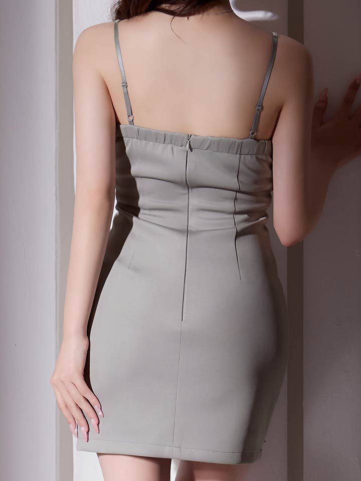 シアー素材×ビジューの組み合わせが目を引くキャミソールミニドレス。