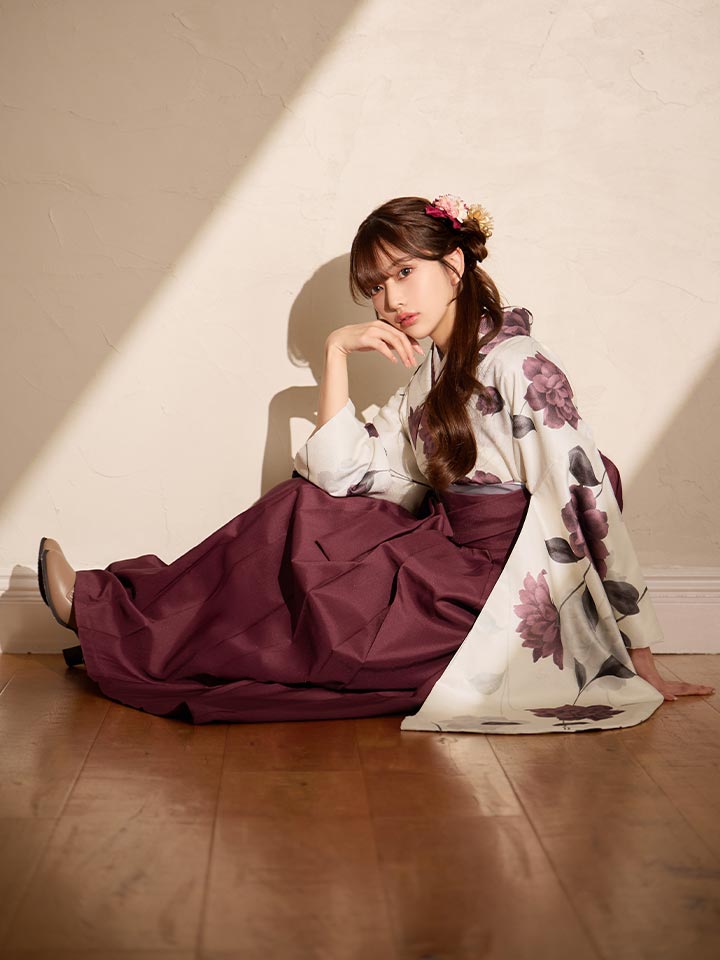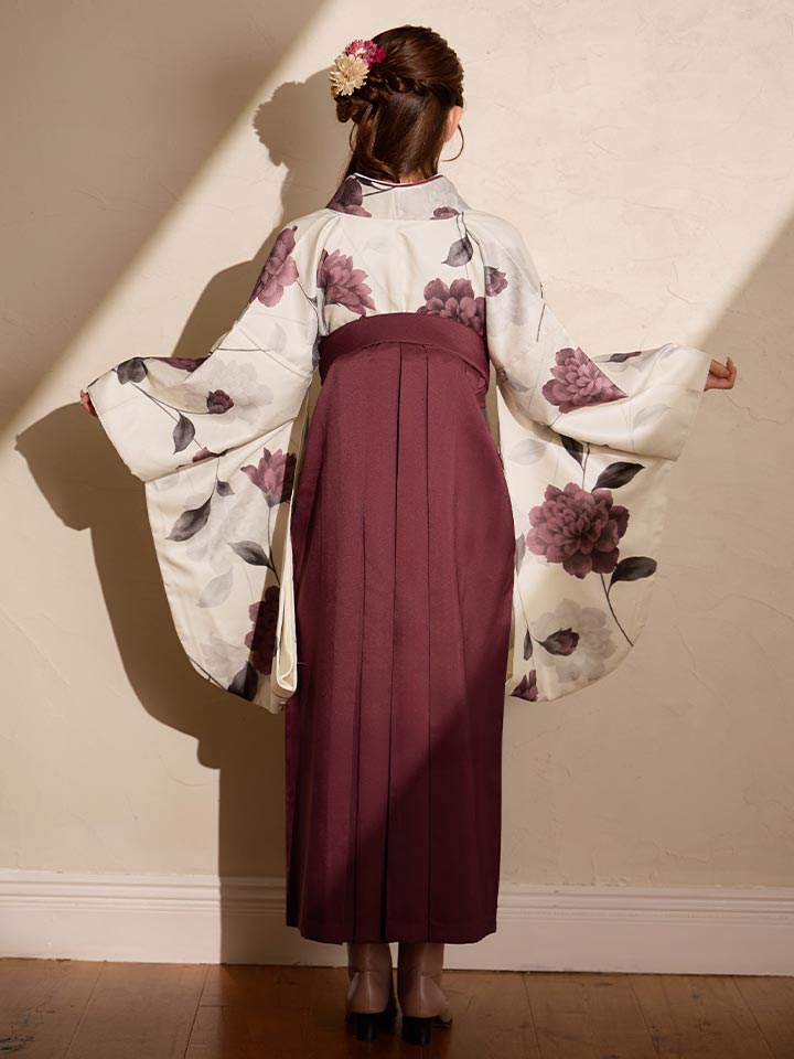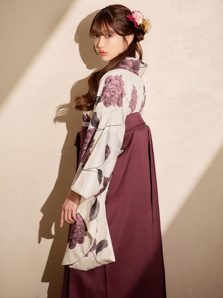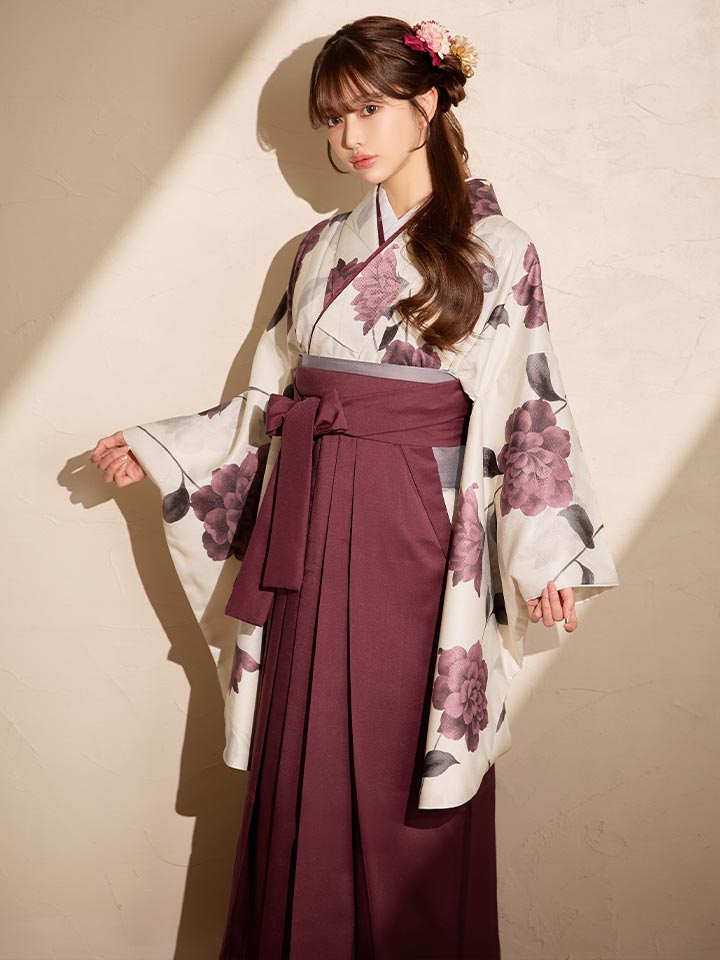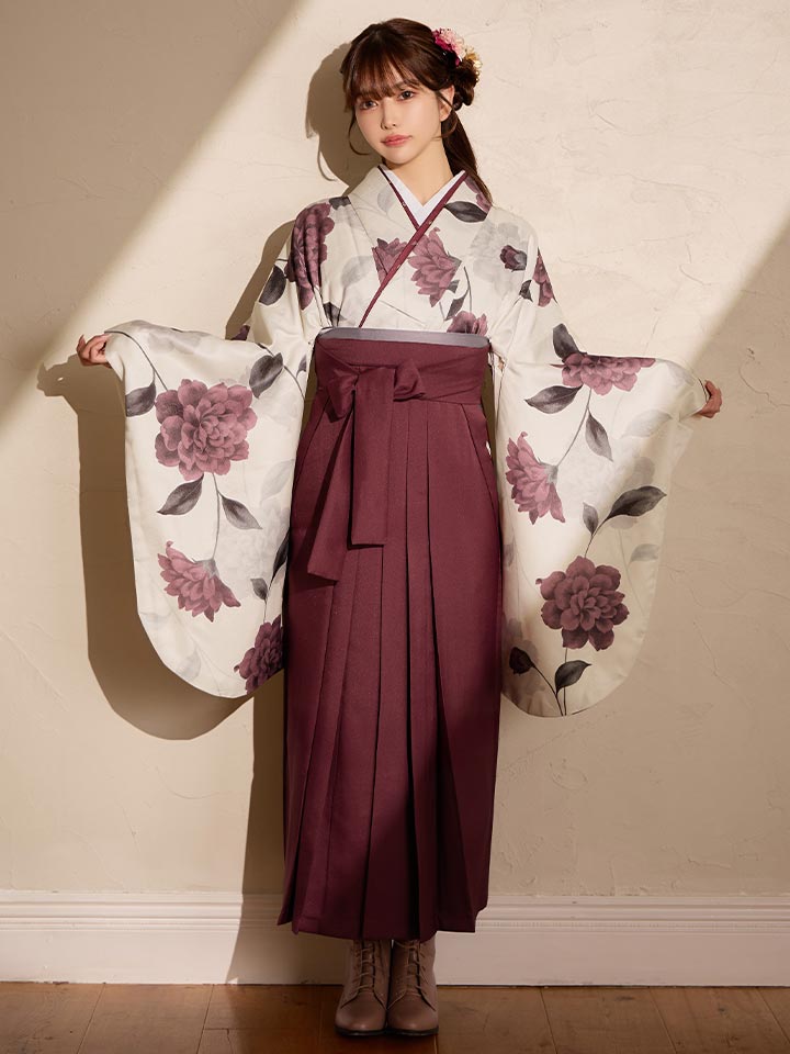 【予約商品 / 1月中旬発送予定】レッドカーネーション ベージュ二尺袖着物【卒業袴3点セット 二尺袖着物/帯/袴】 [HR-104-ok-BE-F-26CC-260110]