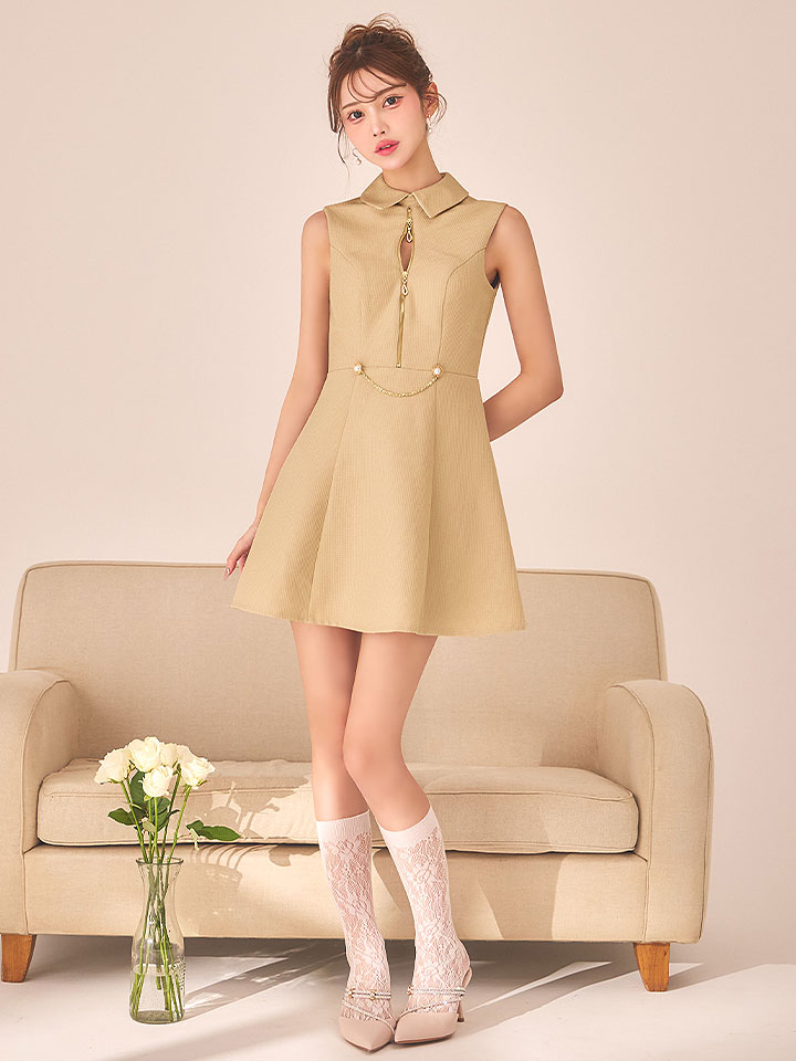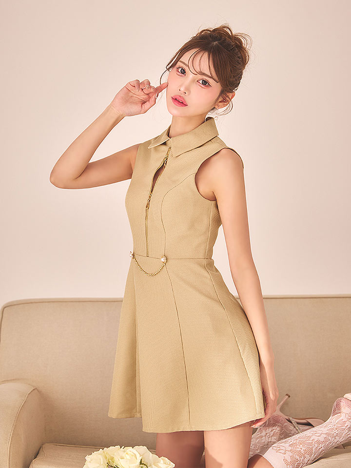 送料無料!襟付きフロントジップフレアーワンピースドレス/キャバドレス【XS-Lサイズ/3カラー】【一部予約商品/1月中旬発送予定】[OF01A] 【SB】dzqvAG [3421SBdzqvAG-260113-1]
