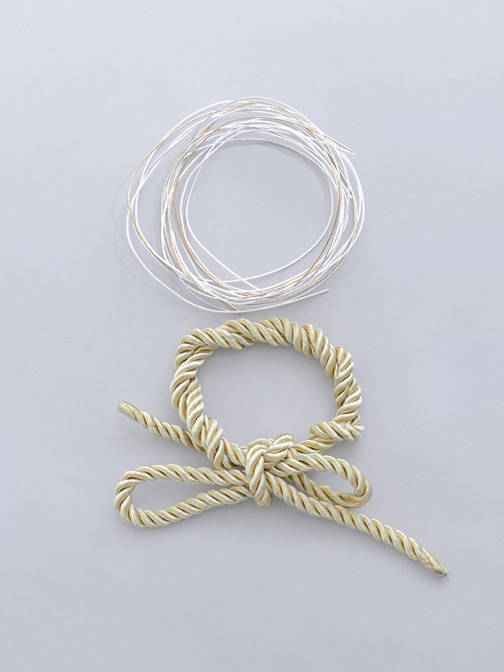ベージュ ブルー フラワー 紐 水引 コサージュ