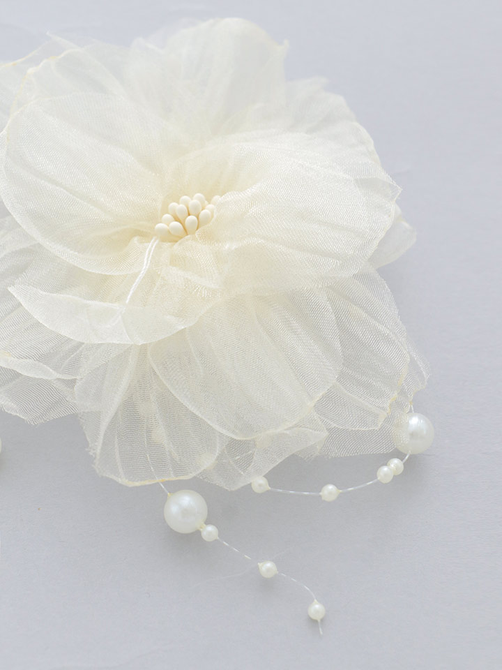 透け感のあるシフォン生地を使用した、大ぶりのフラワーヘアアクセサリークリップ式で着脱も簡単!