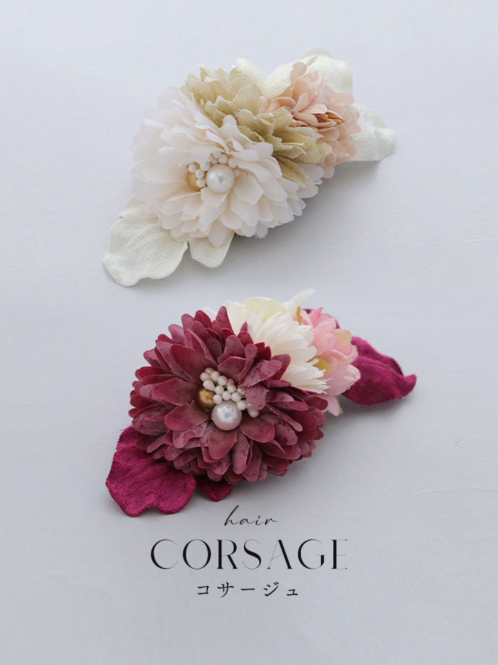 【卒業袴小物】アーティフィシャルフラワーコサージュ【2カラー】 [HKA-115-wk-MG-F-HKA-116-wk-W-F-260116]