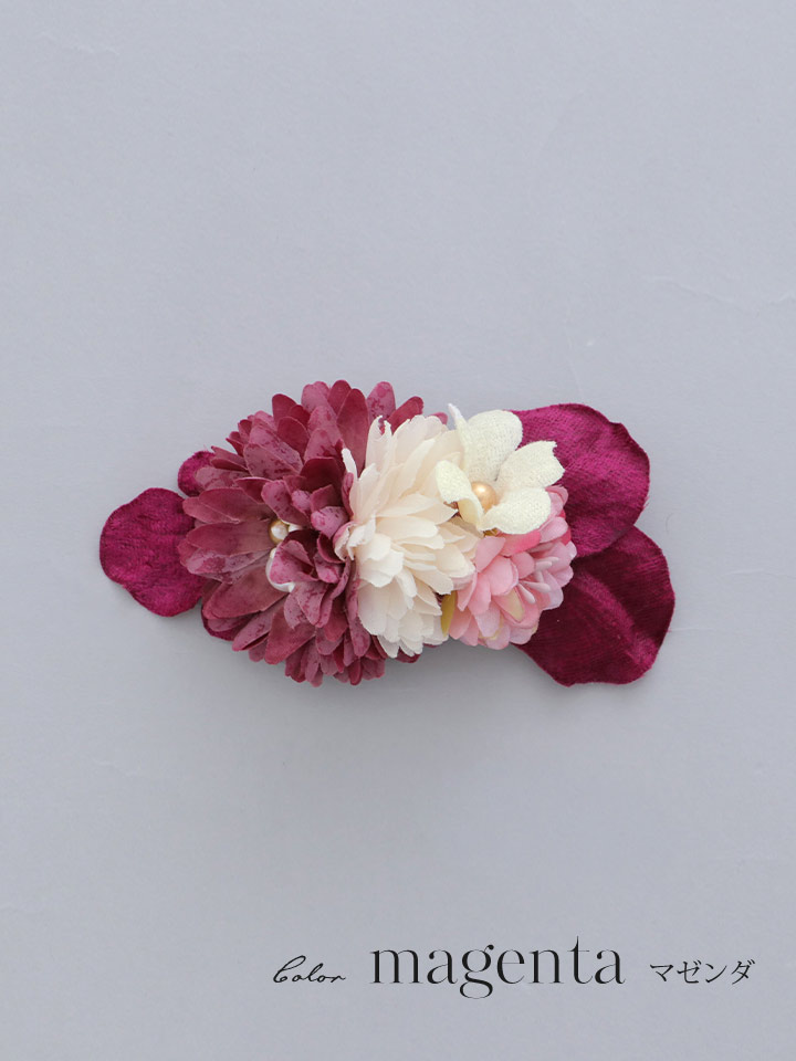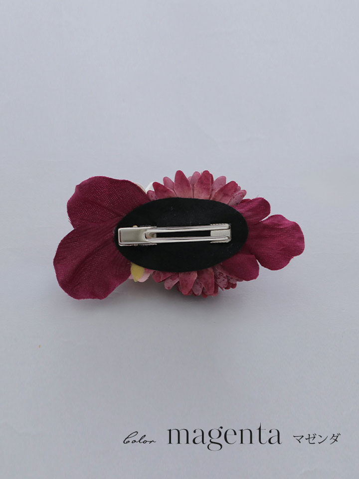アーティフィシャルフラワーを組み合わせた、華やかな髪飾りです。