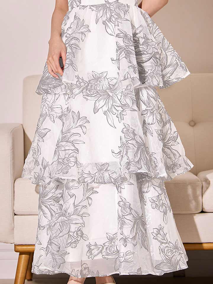 送料無料!【sifeel/シフィール】花柄ティアードフリルワンピースドレス/キャバドレス【S-Lサイズ/1カラー】[OF04]【SB】dzwLD [3398SBdzwLD-260120-1]