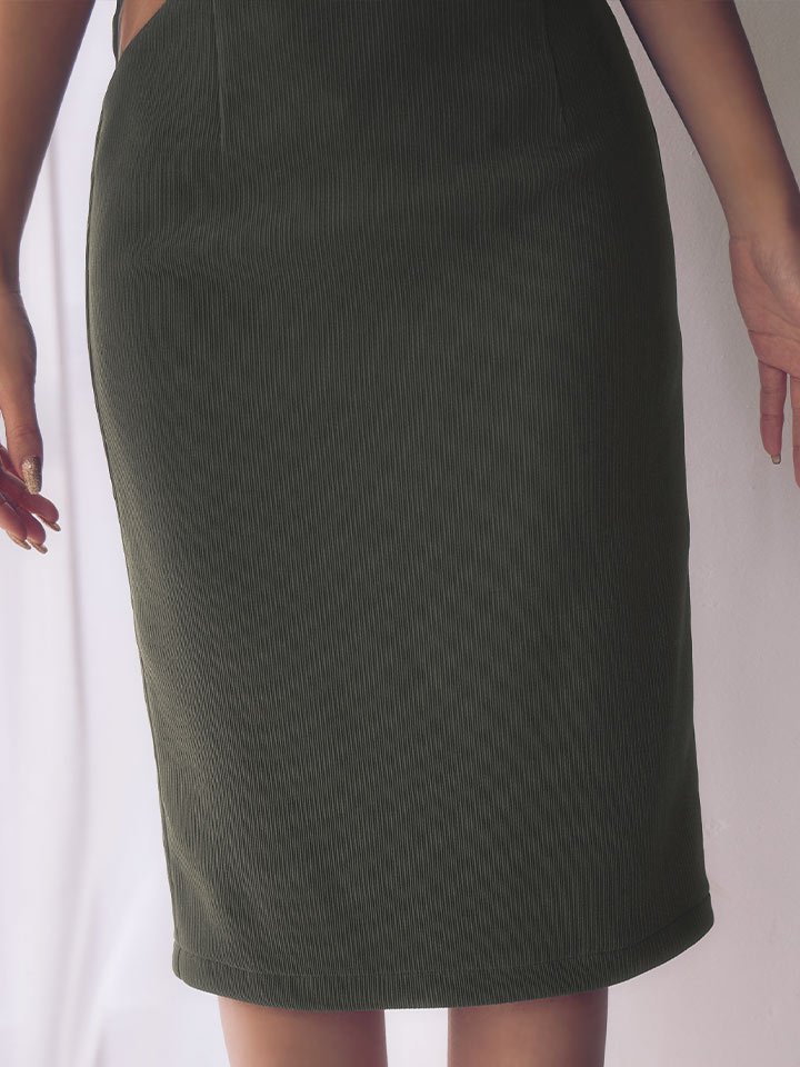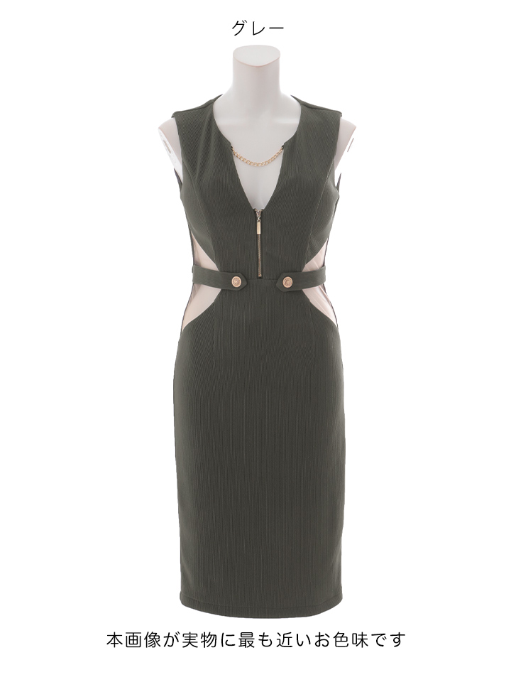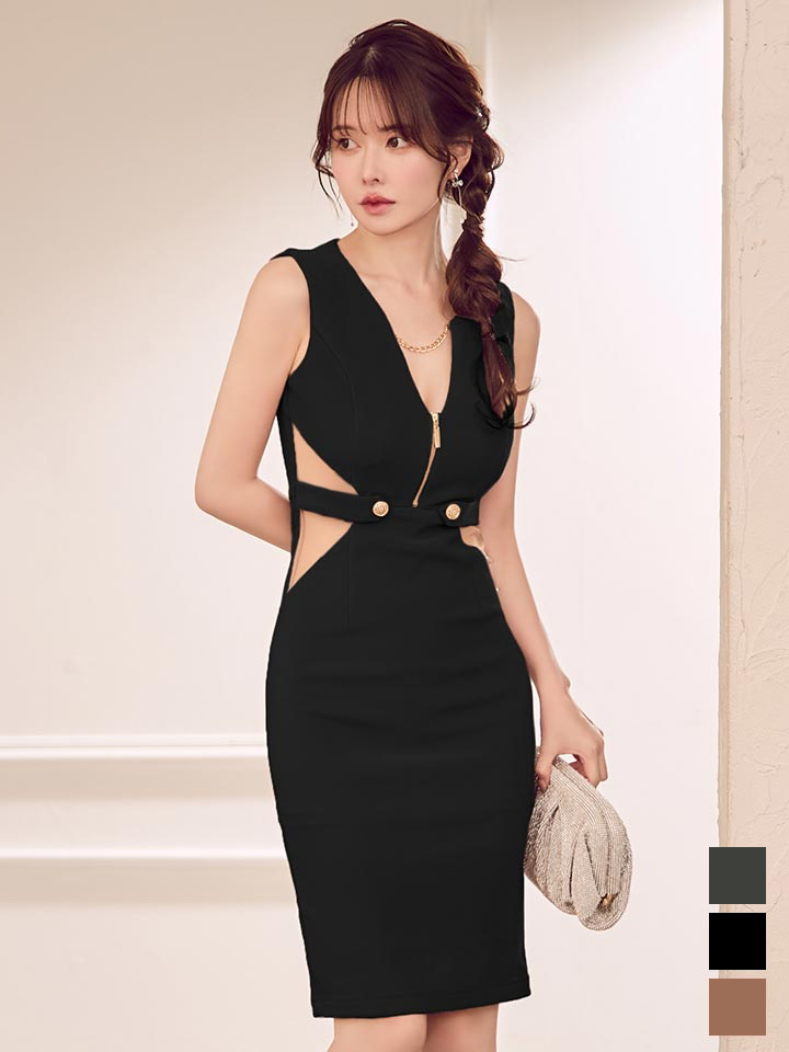 煌めくチェーンが視線を奪う。腰のカットアウトで魅せる、究極の「攻め」ドレス。