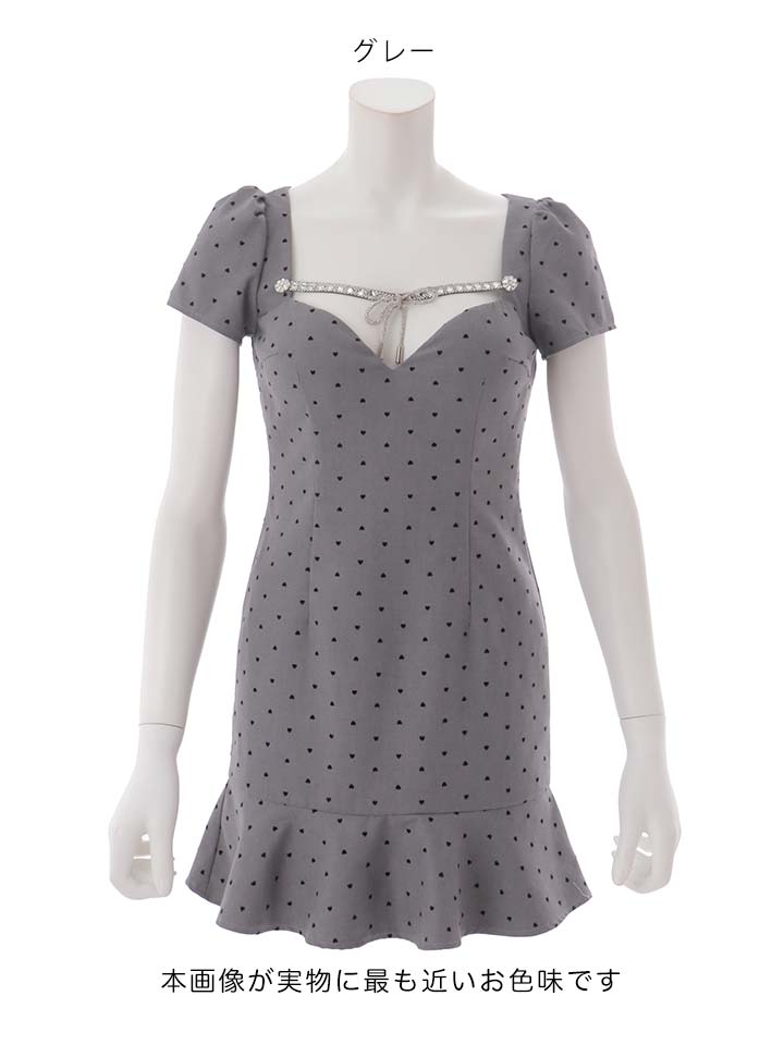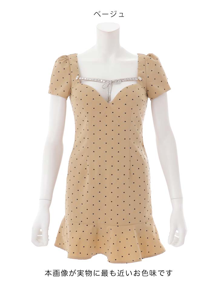 ハートドットビジューリボンマーメイドミニドレス/キャバドレス【XS-XLサイズ/2カラー】[OF03] 【YN】dzwoBF [5824YNdzwoBF-260119-2]
