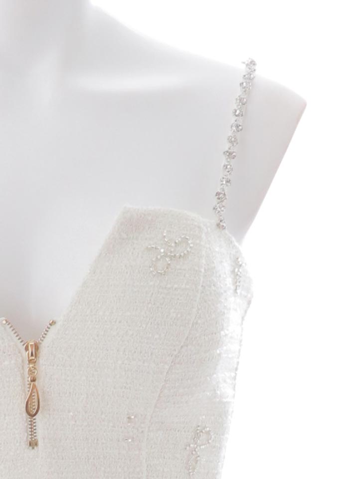 ジュエリーのように輝くビジューキャミが、肩周りを贅沢に彩ります。