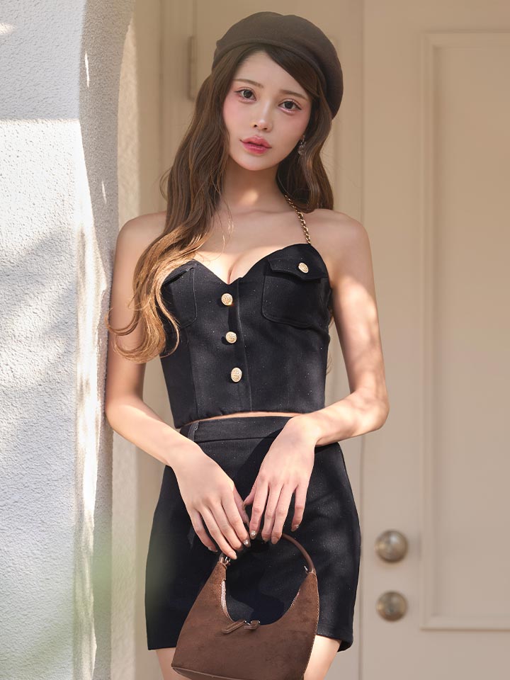 チェーンホルターネックデニムセットアップミニドレス/キャバドレス【XS-Lサイズ/1カラー】[OF03]【YN】dzjuAG [5891YNdzjuAG-250304-1]