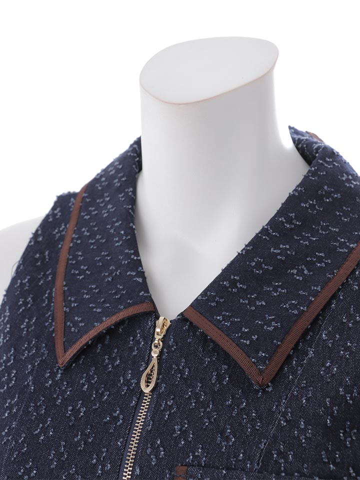 襟付きフロントジップデニムタイトミニドレス/キャバドレス【XS-Lサイズ/1カラー】[OF04]【SB】dzmuAG [3659SBdzmuAG-250304-1]