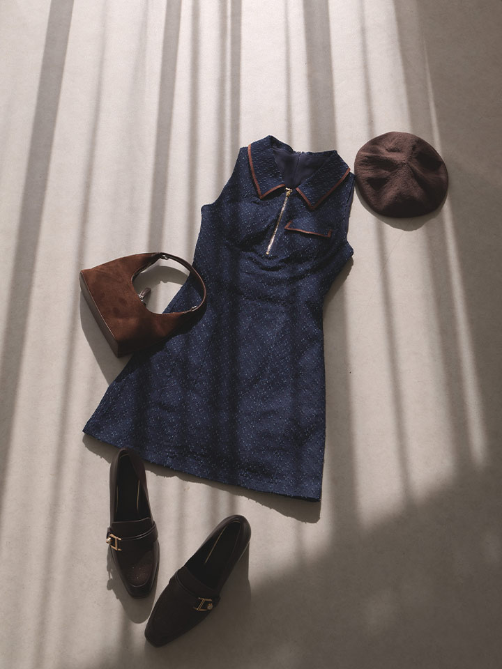 程よくラフなデニム素材で、気取らないのにしっかり可愛い今っぽスタイルに仕上げました。
