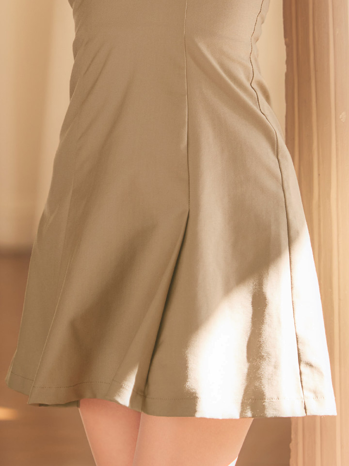 フレアスカートがふんわりと広がり、谷間見せで女性らしさもしっかり演出できる一着です。