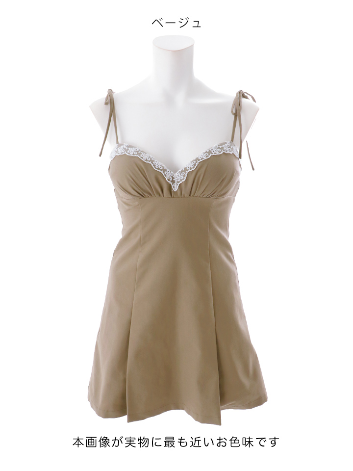 胸元にレースをあしらい、上品な甘さをプラスしたミニドレス。