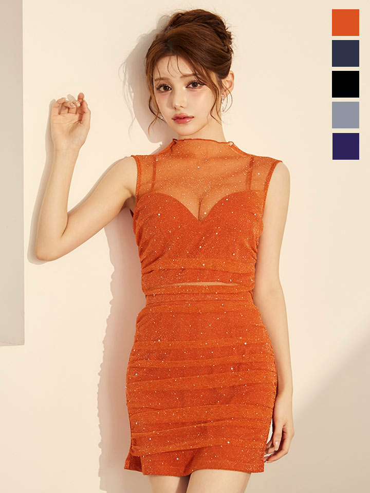 送料無料!【即日発送】シアーラメビジューセットアップミニドレス/キャバドレス【XS-XLサイズ/5カラー】[OF03]【YN】dzwg [AG5423YNdzwg-260205-1]