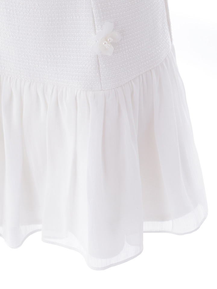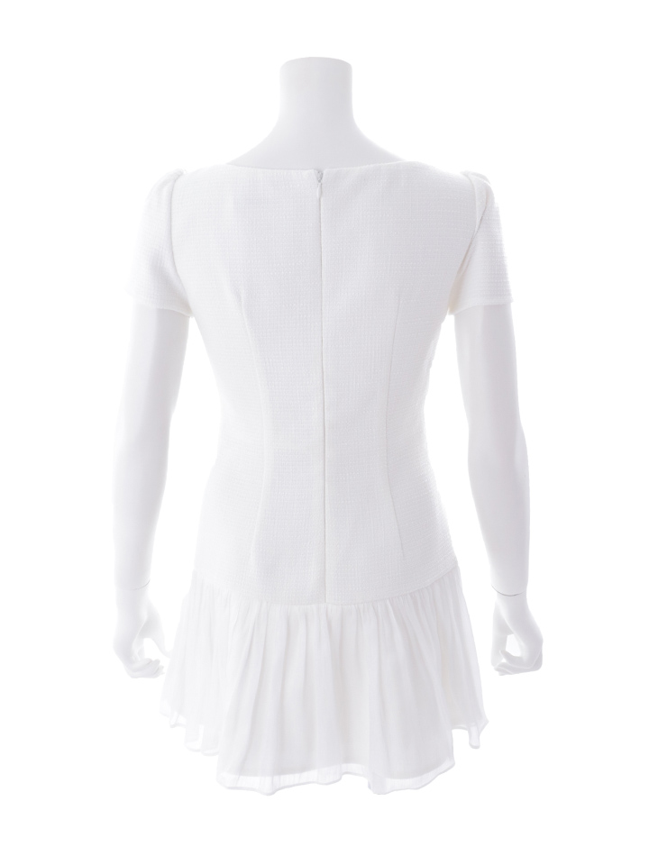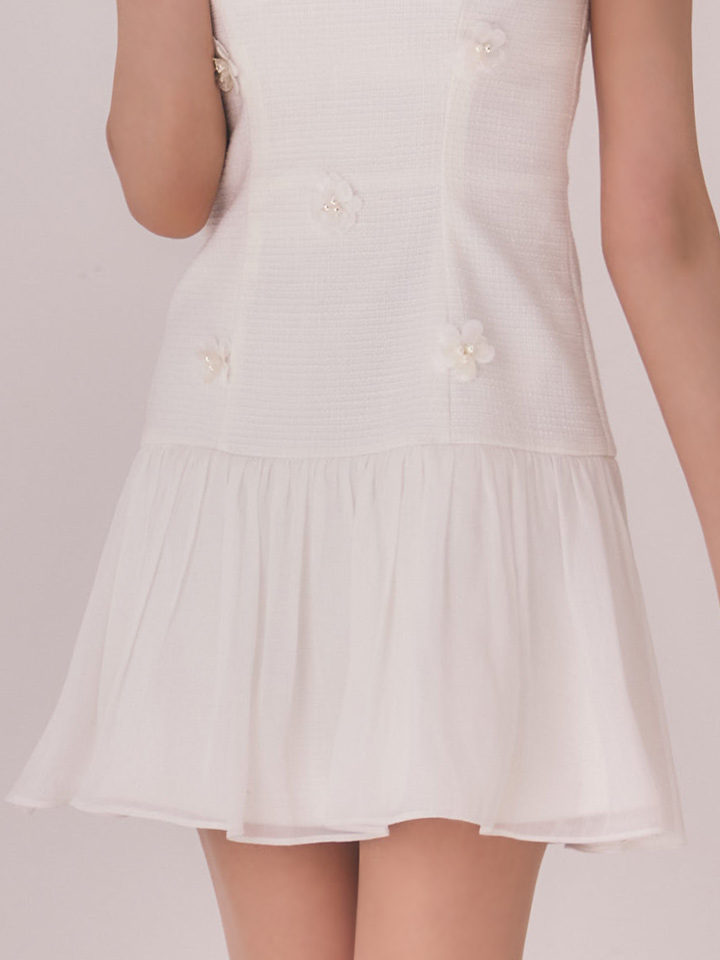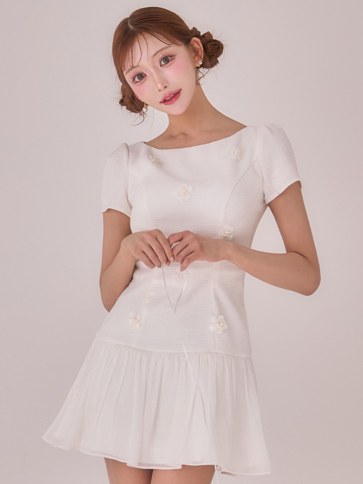 シフォン素材のスカートが軽やかに揺れるミニドレス。