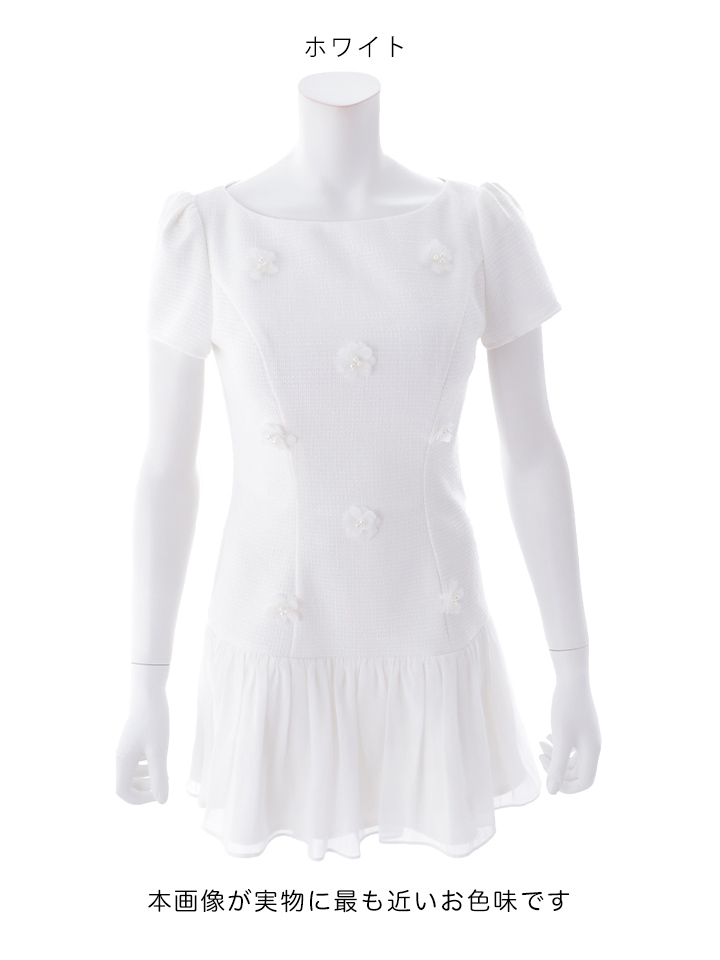 フラワーモチーフボートネックフレアミニドレス/キャバドレス【XS-XLサイズ/1カラー】[OF03]【YN】dzwIA [5846YNdzwIA-260209-1]