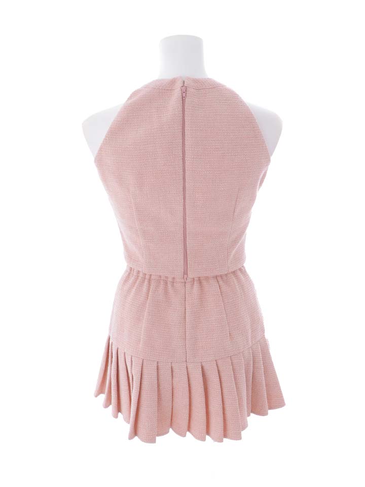 すっきりとしたアメスリデザインに、動くたび揺れるプリーツが可愛らしさを添えるミニドレス。