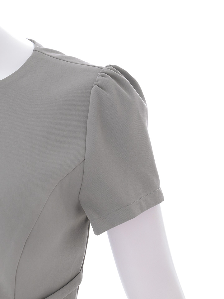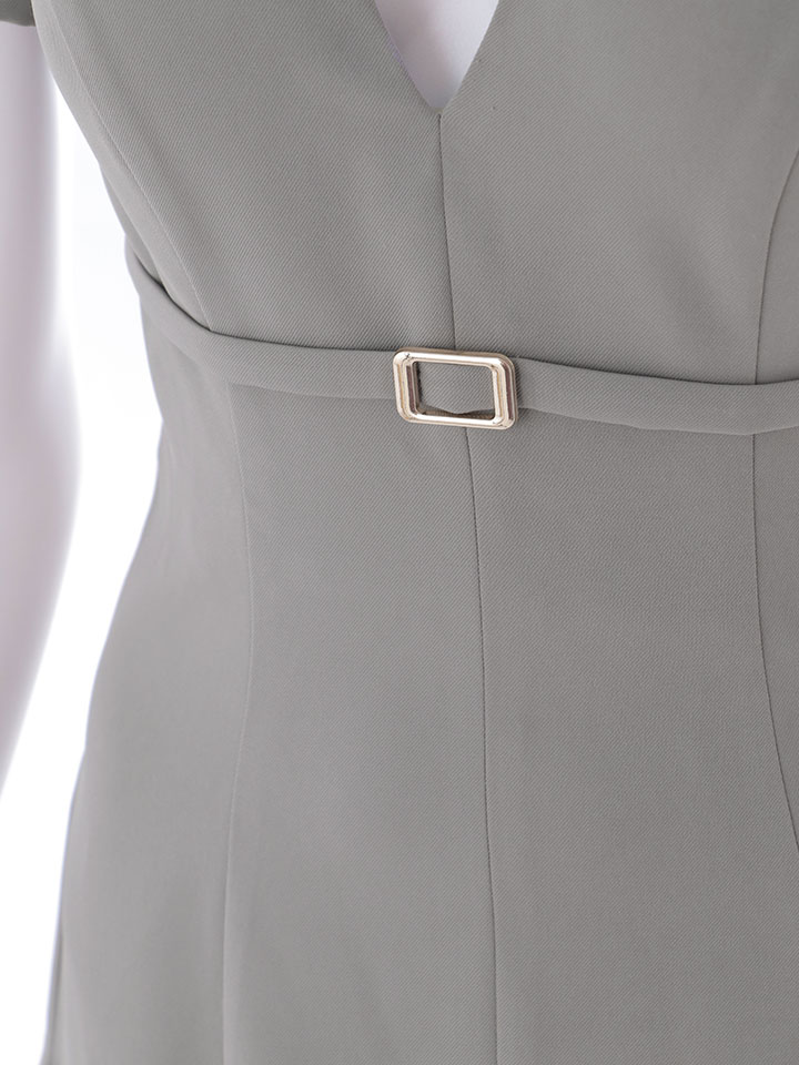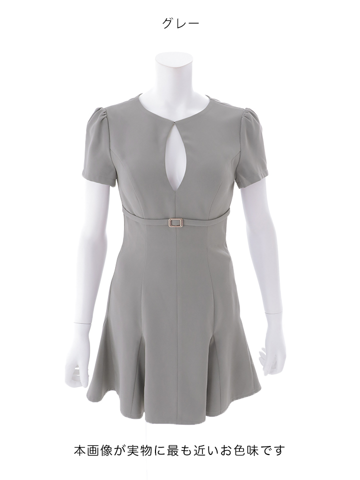胸下にあしらったベルトデザインがウエスト位置を高く見せ、スタイルアップ効果も期待できるミニドレス。