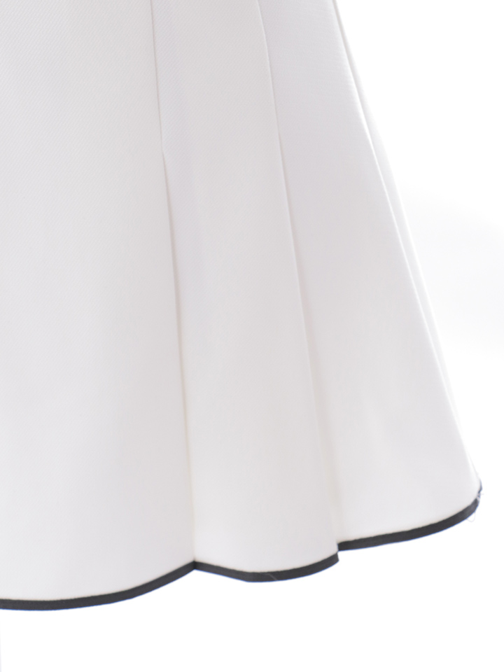 襟元とウエストのパイピングラインがシルエットを美しく引き締め、スタイルアップを叶えます。