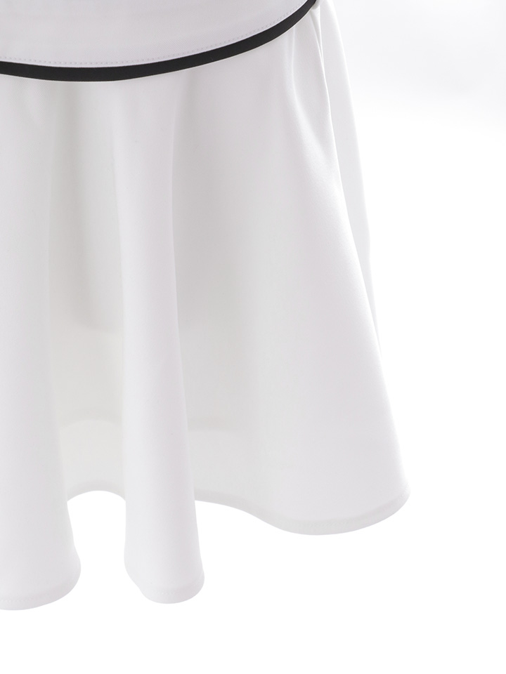 パイピングがアクセントの「胸とじ」ミニドレス。