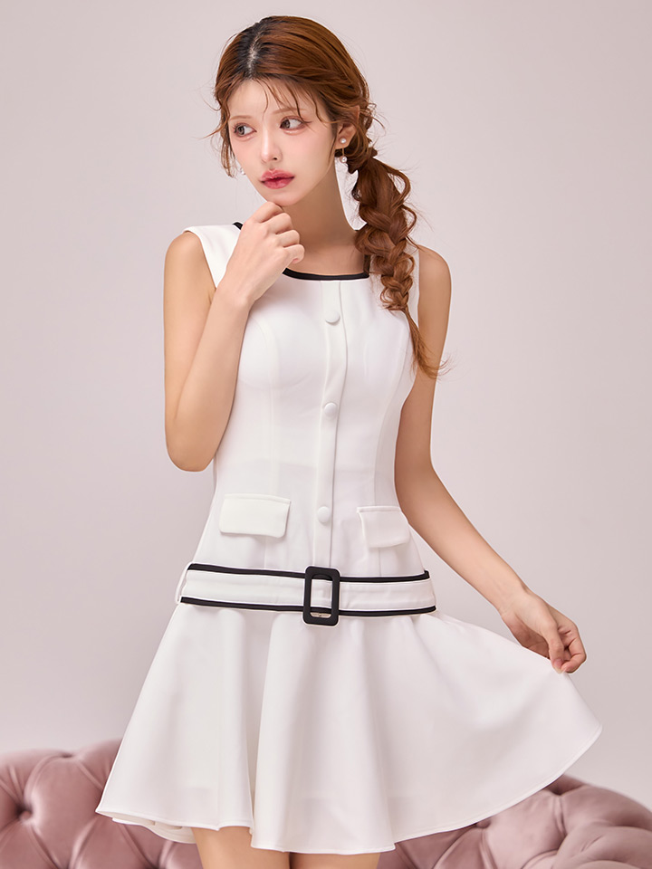 送料無料!ウエストベルトパイピングフレアミニドレス/キャバドレス【XS-Mサイズ/1カラー】【一部予約商品/3月中旬発送予定】[OF04]【SB】dzwIA [3601SBdzwIA-260218-1]