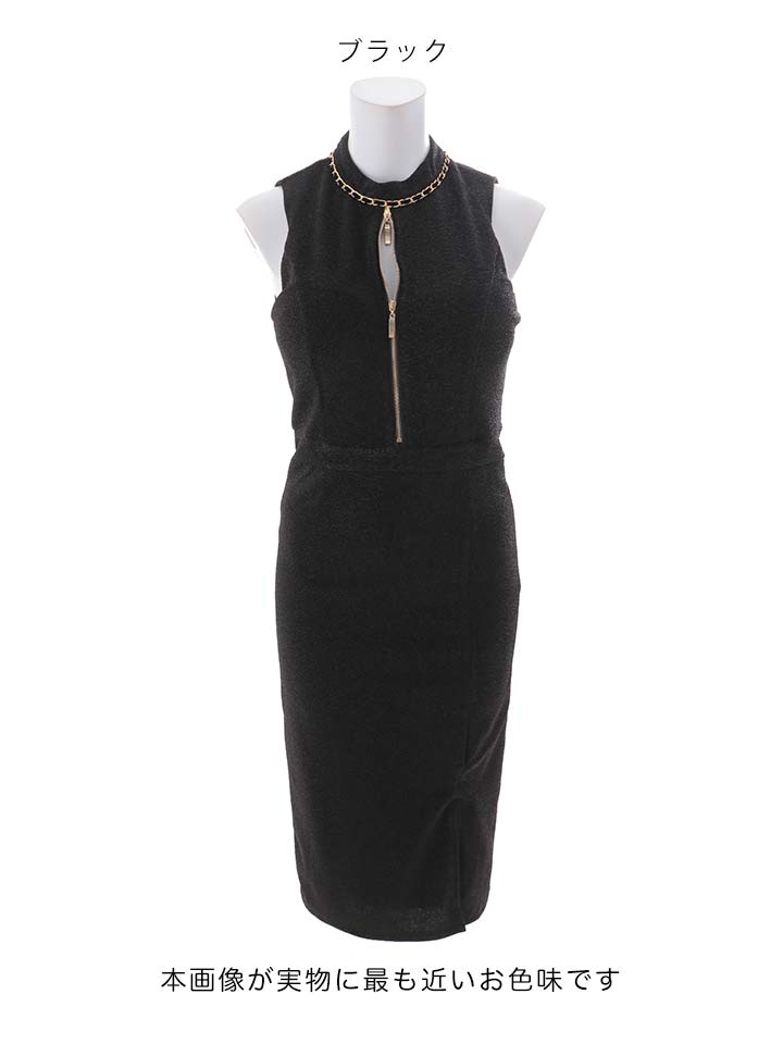フロントジップラメタイトミディアムドレス/キャバドレス【XS-Lサイズ/1カラー】[OF03]【IM】 [J-988-260220-1]