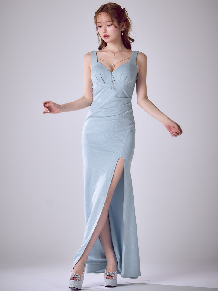 足首まで続くタイトなシルエットが、女神のような曲線美を惹き立てる王道のロングドレス。