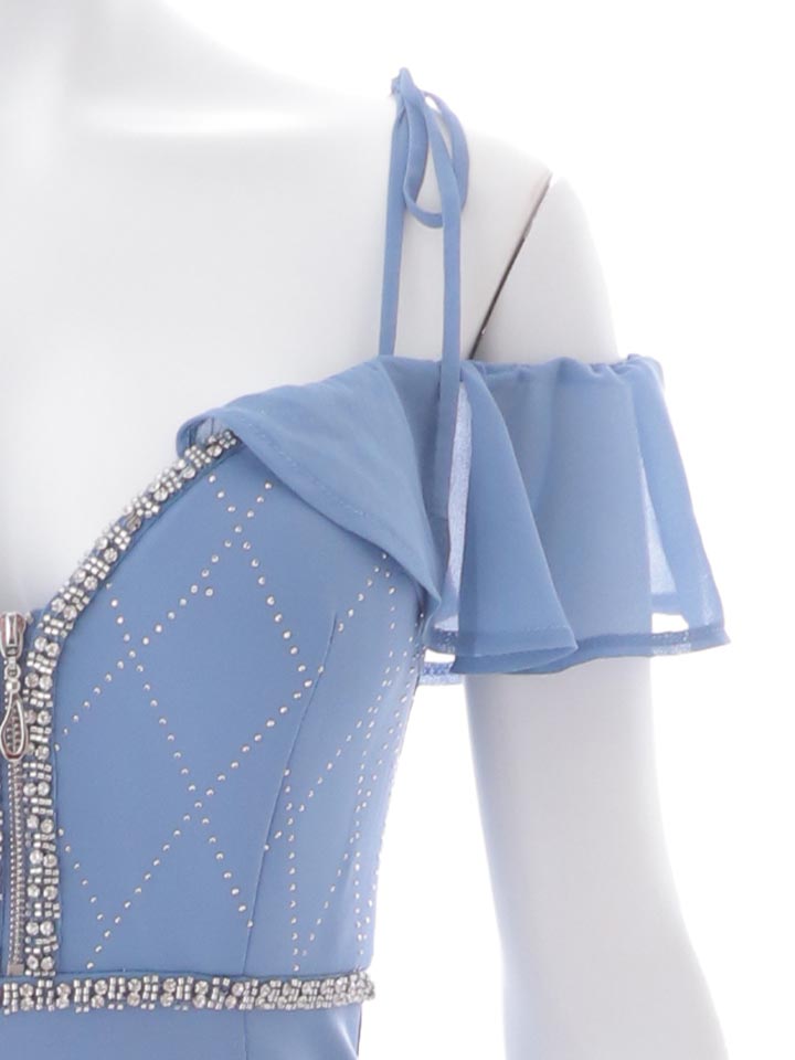 胸元からウエストにかけて施したビジューが華やかに輝き、自然な谷間見せで女性らしさを演出。