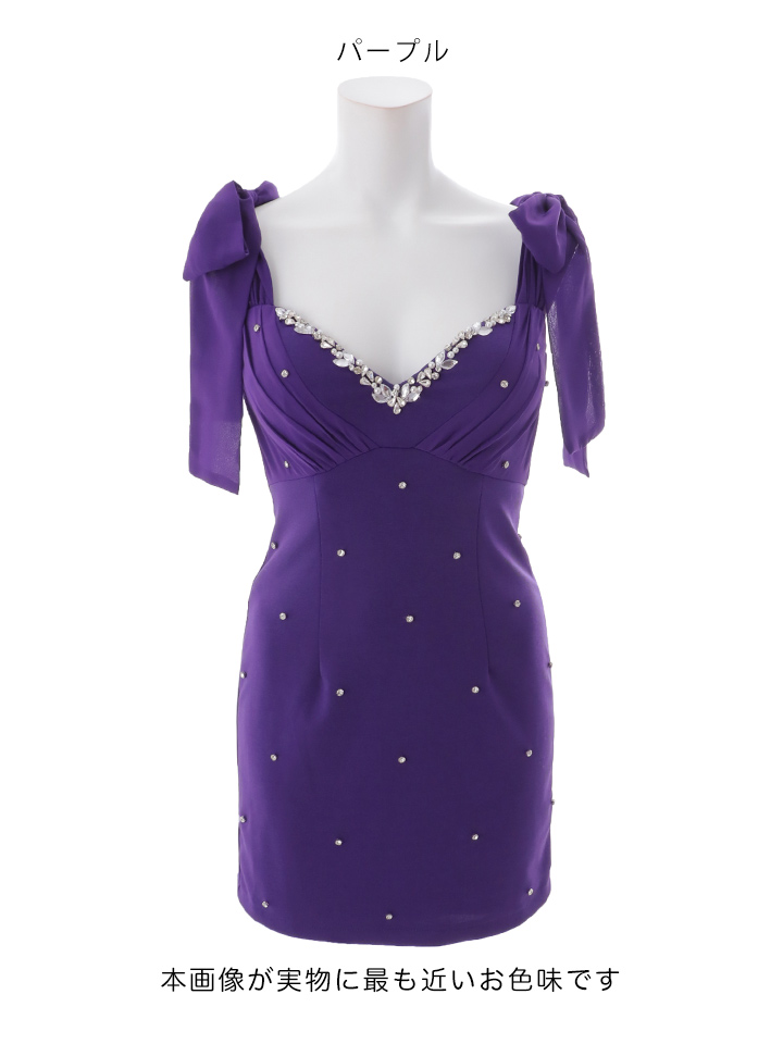 【即日発送】新色登場!ショルダーリボンVネックビジュータイトミニドレス/キャバドレス【XS-Lサイズ/3カラー】[OF03] 【YN】dzwvCA [5716YNdzwvCA-260130-1]