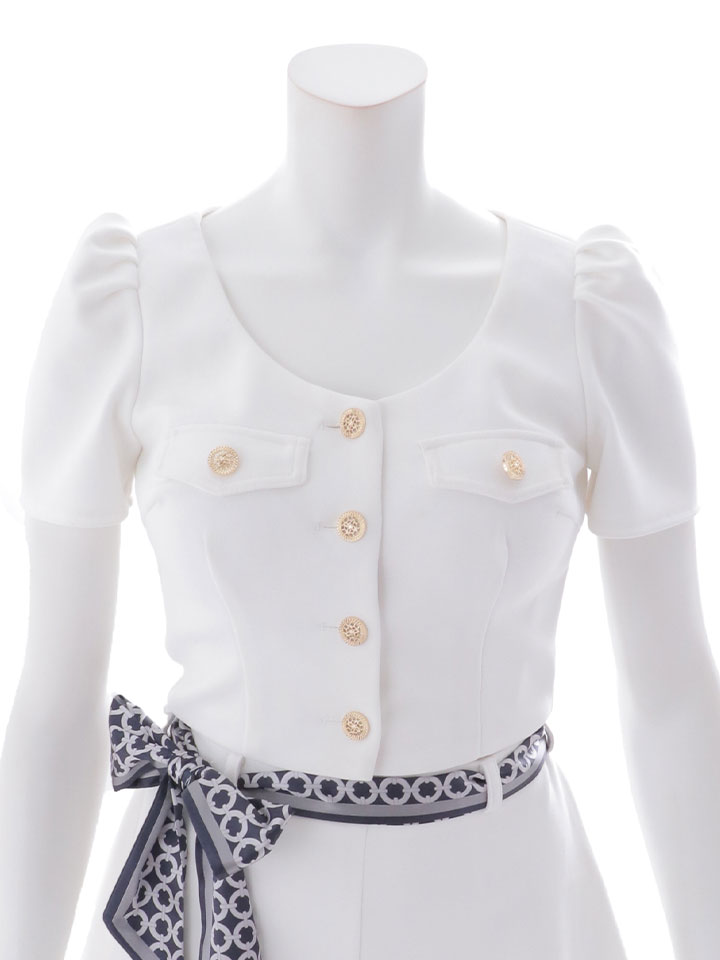 半袖仕様に、腰のポイントスカーフがアクセントとなり、程よく華やかさをプラス。