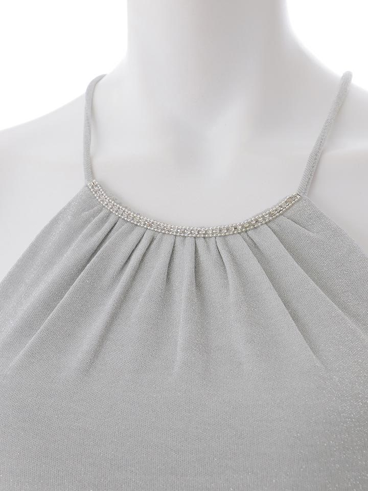 首元に施されたビジューラインが視線を集め、洗練された印象に仕上げたロングドレス。