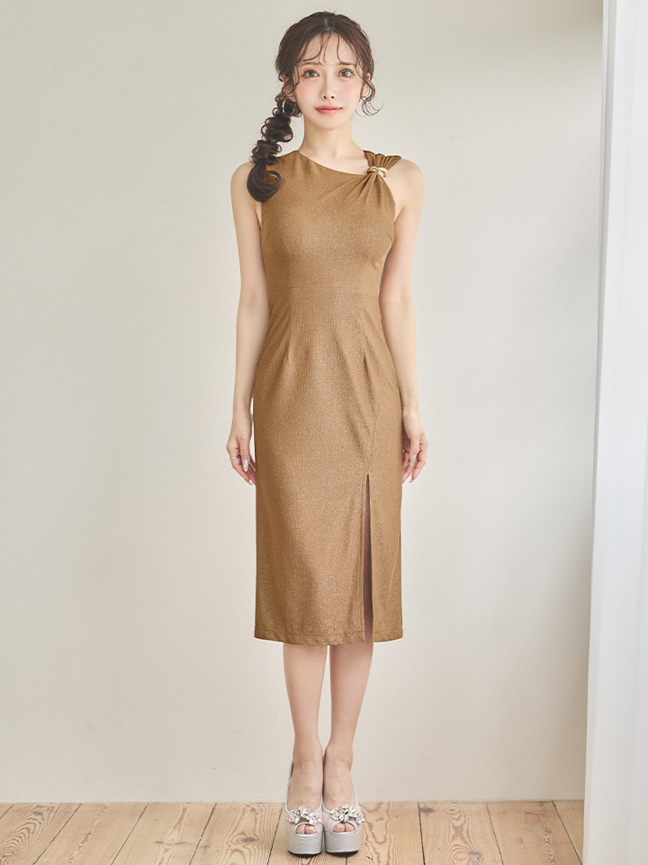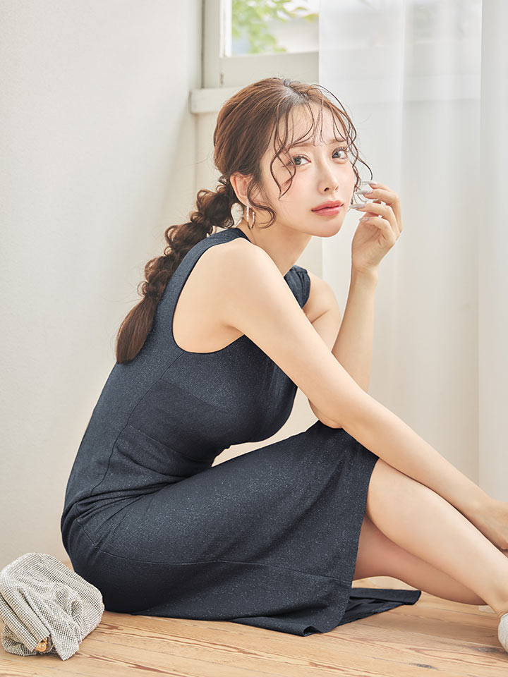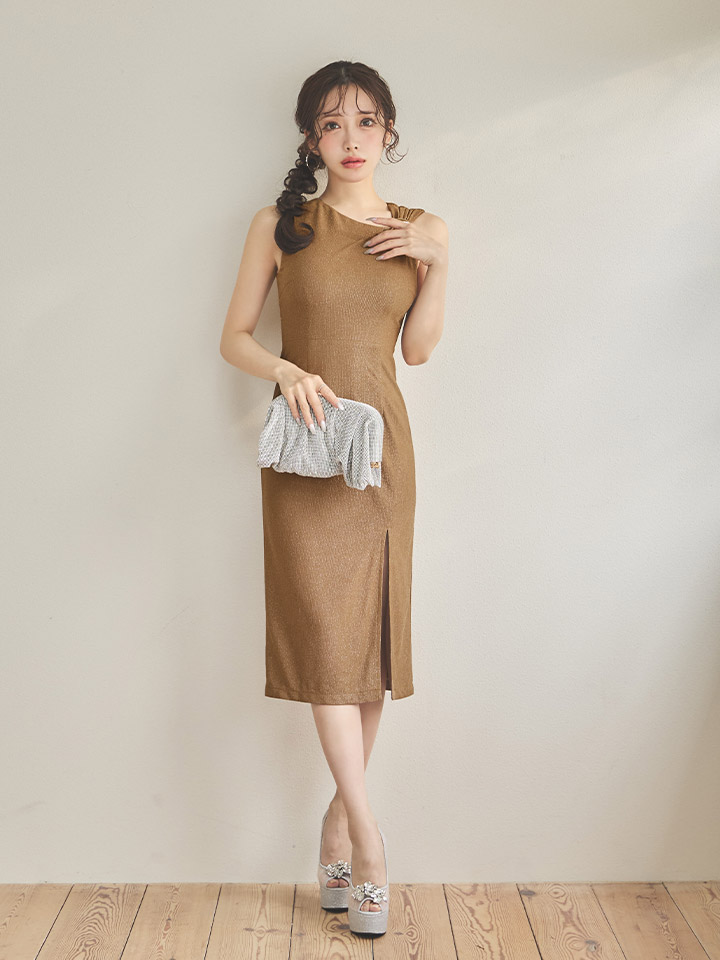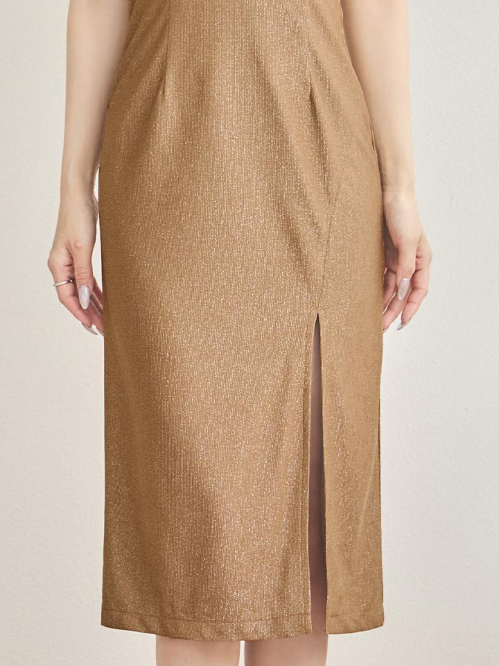 ノースリーブラメタイトスリットミディアムドレス/キャバドレス【XS-Mサイズ/2カラー】[OF03]【YN】dzwvFV [5910YNdzwvFV-260321-1]