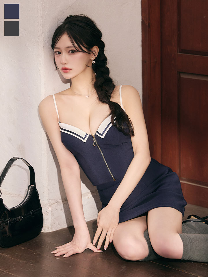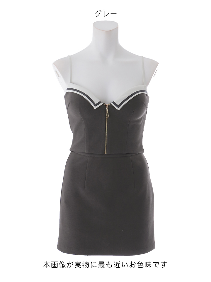バイカラー/パイピング/襟付き/フロントジップ/キャミソール/スーツ生地/無地/タイト/セットアップ/ミニドレス/キャバドレス【XS-Mサイズ/2カラー】[OF03] 【YN】dzwvAG [5924YNdzwvAG-260401-1]