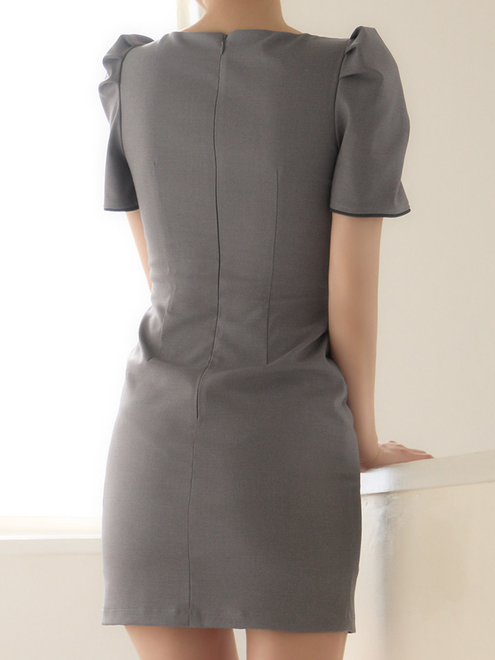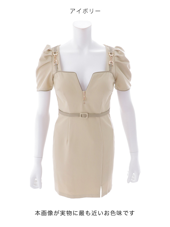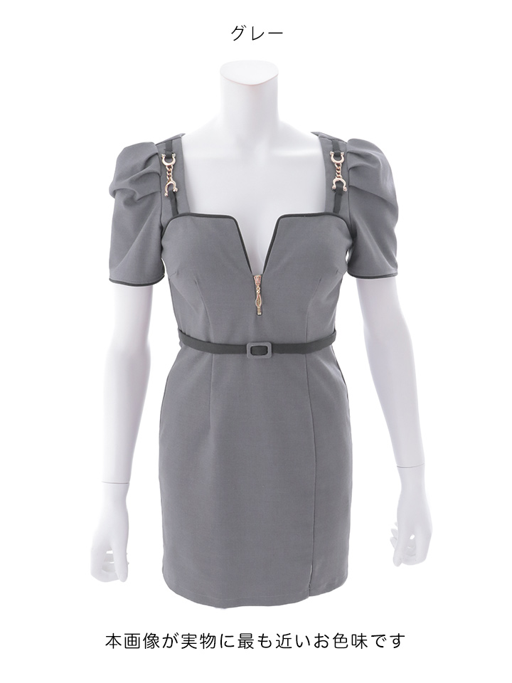 半袖デザインで程よく上品さを残しつつ、胸元の谷間カットが女性らしさを引き立てるミニドレス。